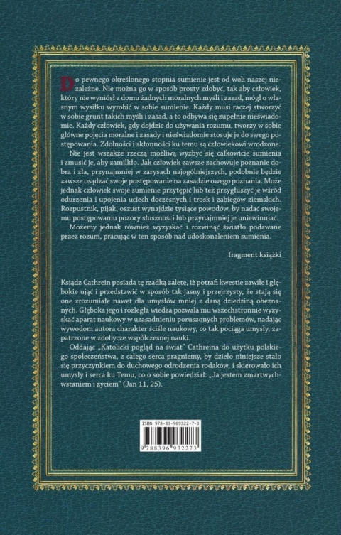 Oddając Katolicki pogląd na świat Cathreina do użytku polskiego społeczeństwa, z całego serca pragniemy, by dzieło niniejsze stało się przyczynkiem do duchowego odrodzenia rodaków, i skierowało ich umysły i serca ku Temu, co o sobie powiedział: ja jestem zmartwychwstaniem i życiem (Jan 11,25).